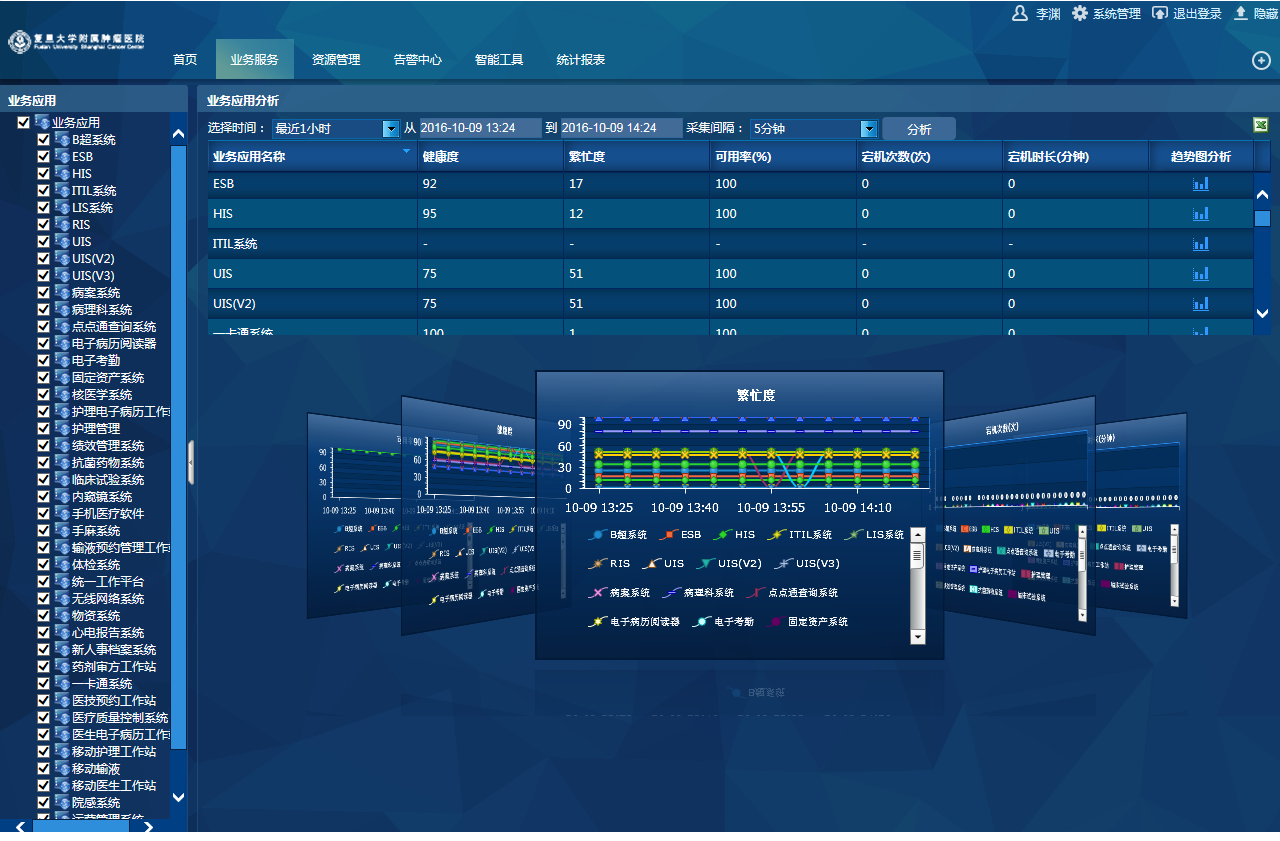 第三:伴随着医院临床业务系统的持续增多,资源支撑复杂,业务故障需要准确快速定位,需要对数据中心和网络环境进行统一监控和运维。同时,IT服务请求越来越多,需要对问题分类登记、跟踪处理和反馈。